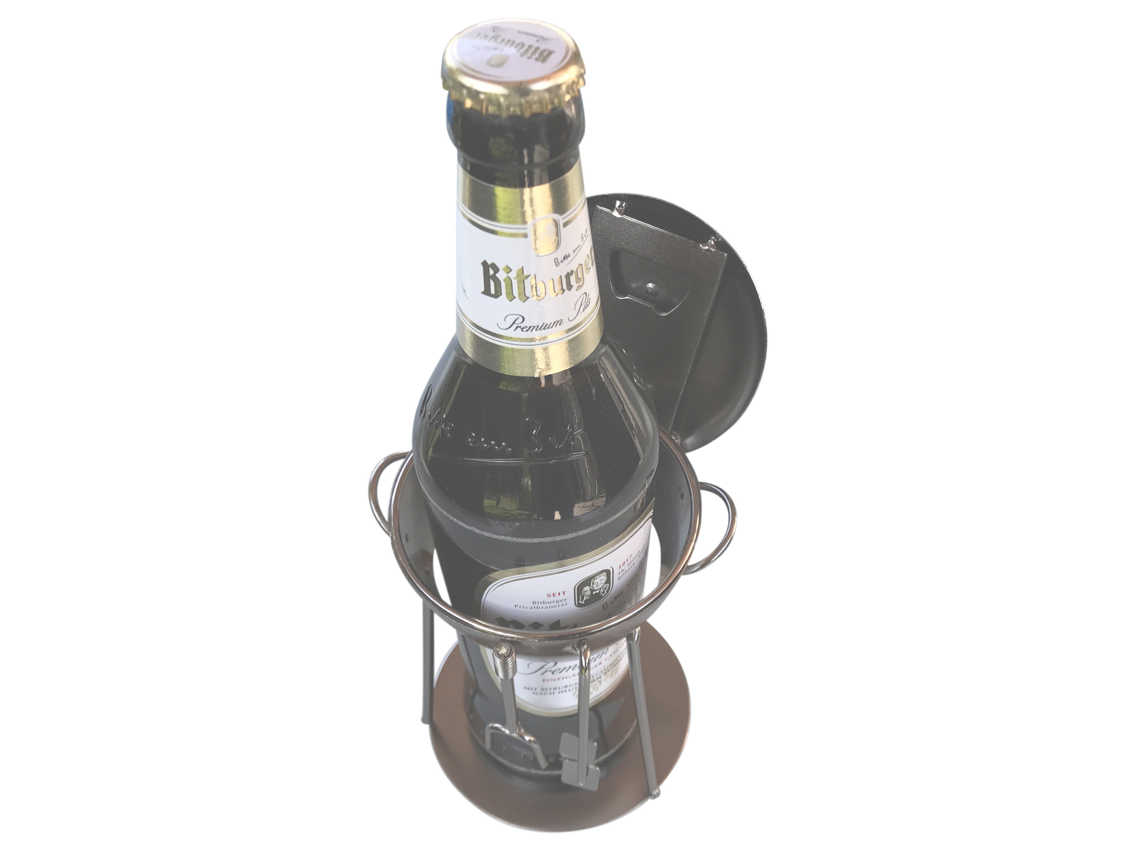 Produktinformationen "Bierflaschenhalter und Öffner aus Metall 15 cm Hoch für 0 33 Liter Flaschen"