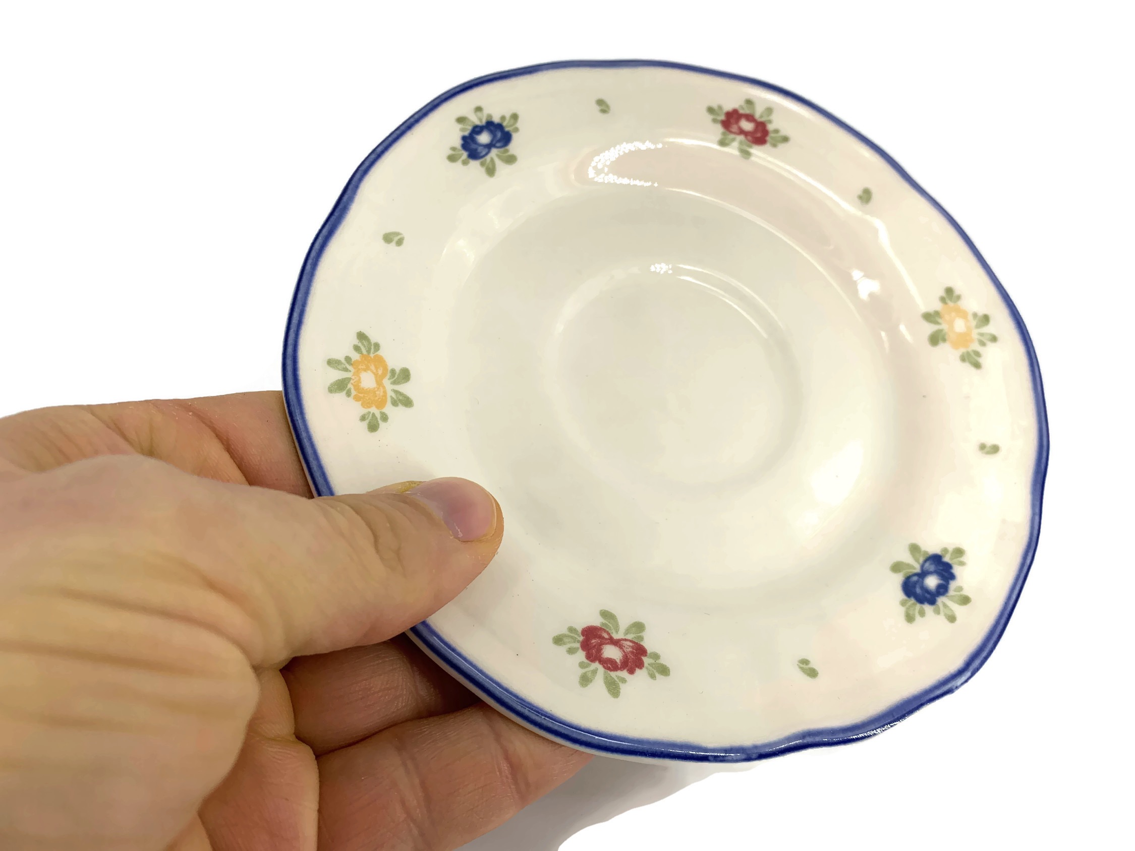 Am Anfang der Herstellung des Untertasse Petite Rose Artikels in der Grösse 15 cm steht der Werkstoff. Hier die richtige Mixtur zu verwenden, die Topqualität sichert, ist eine Kunstgriff für sich. Gerade bei dem Dekor Petite Rose ist die Herstellung eine besondere Kunst! Das Ergebnis dieser Kunst ist Stil! Bei der Zeller Keramik beherrscht man diese Kunst seit mehr als 100 Jahren, resultierend aus Erfahrung und handwerklichem Geschick. Damals wie heute ist für die Serie Petite Rose die Zusammensetzung der Steingutmasse, die exklusiv für die Zeller Keramik gefertigt wird und in bedeutenden Teilen aus tonigen Erden, weißbrennendem Kaolin, Feldspat, Kalkspat und Quarzsand besteht, top secret. Was eine Rolle spielt ist das Ergebnis und das kann sich sehen lassen. Petite Rose ist ein besonders hervorstechendes und schönes Dekor. Die Qualität des Petite Rose Werkstoffs ist hervorragend. Denn der hochwertige Scherben aller Dekore seit über zehn Jahren ist kantenstabil, mikrowellengeeignet und spülmaschinenfest und trägt, ganz umweltbewusst, nur cadmium-und bleifreie Glasuren! Informationen zur Produktsicherheit: Nur für den Hausgebrauch.