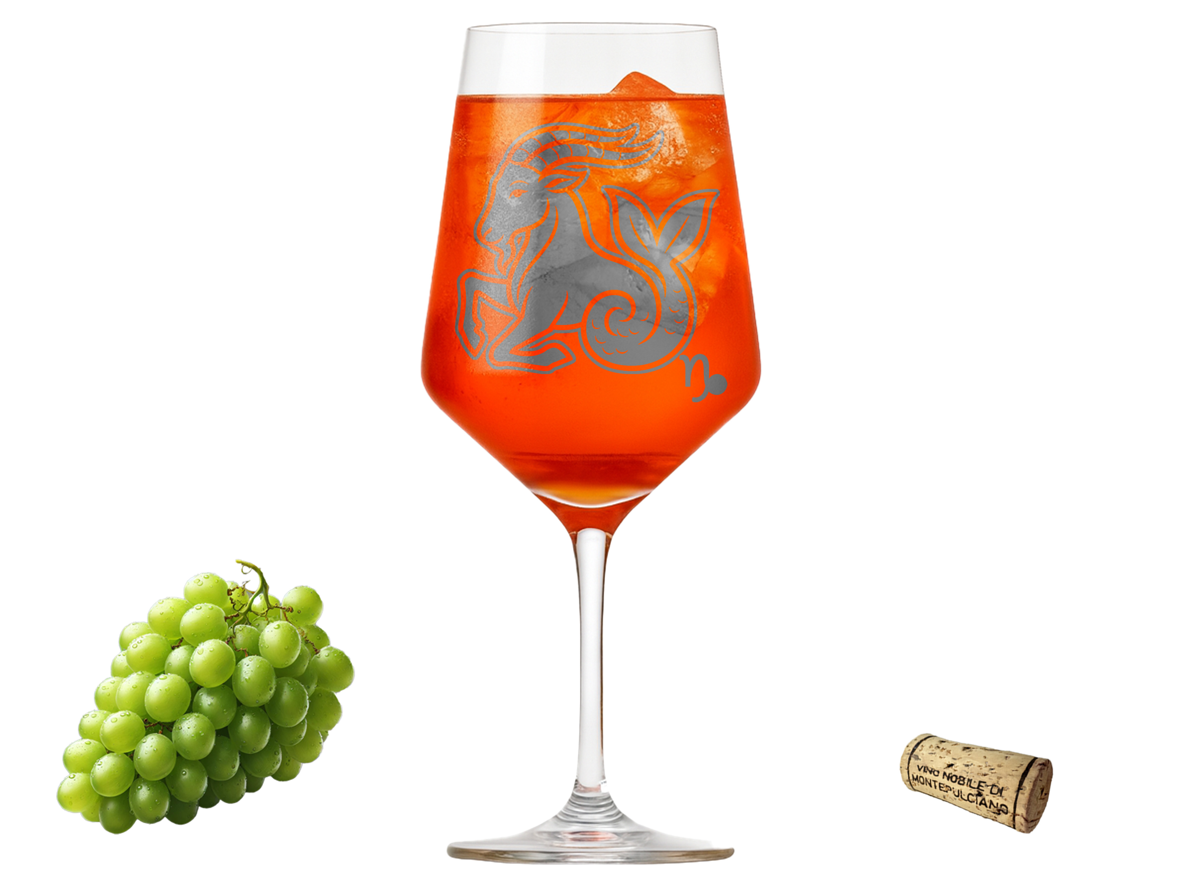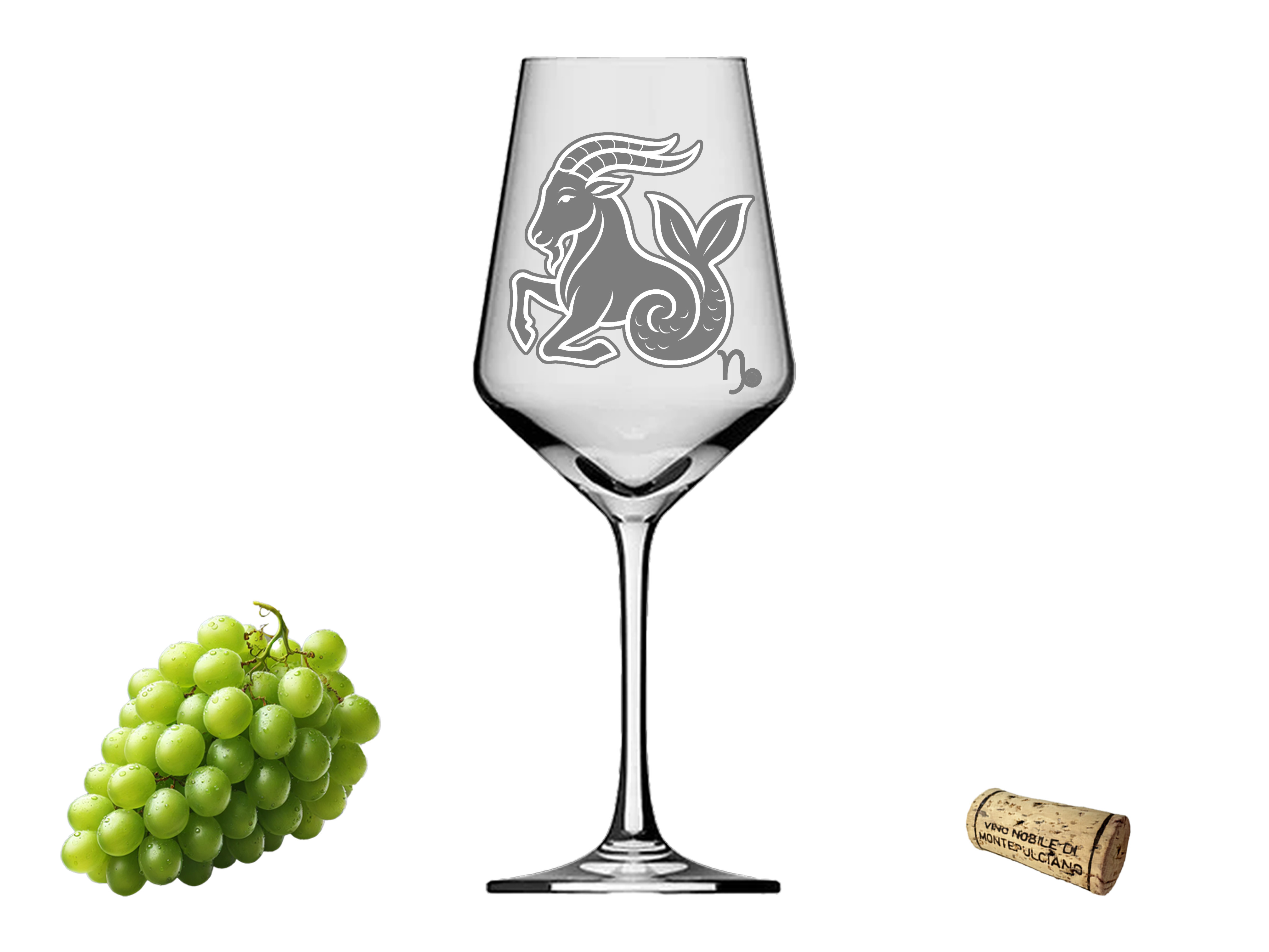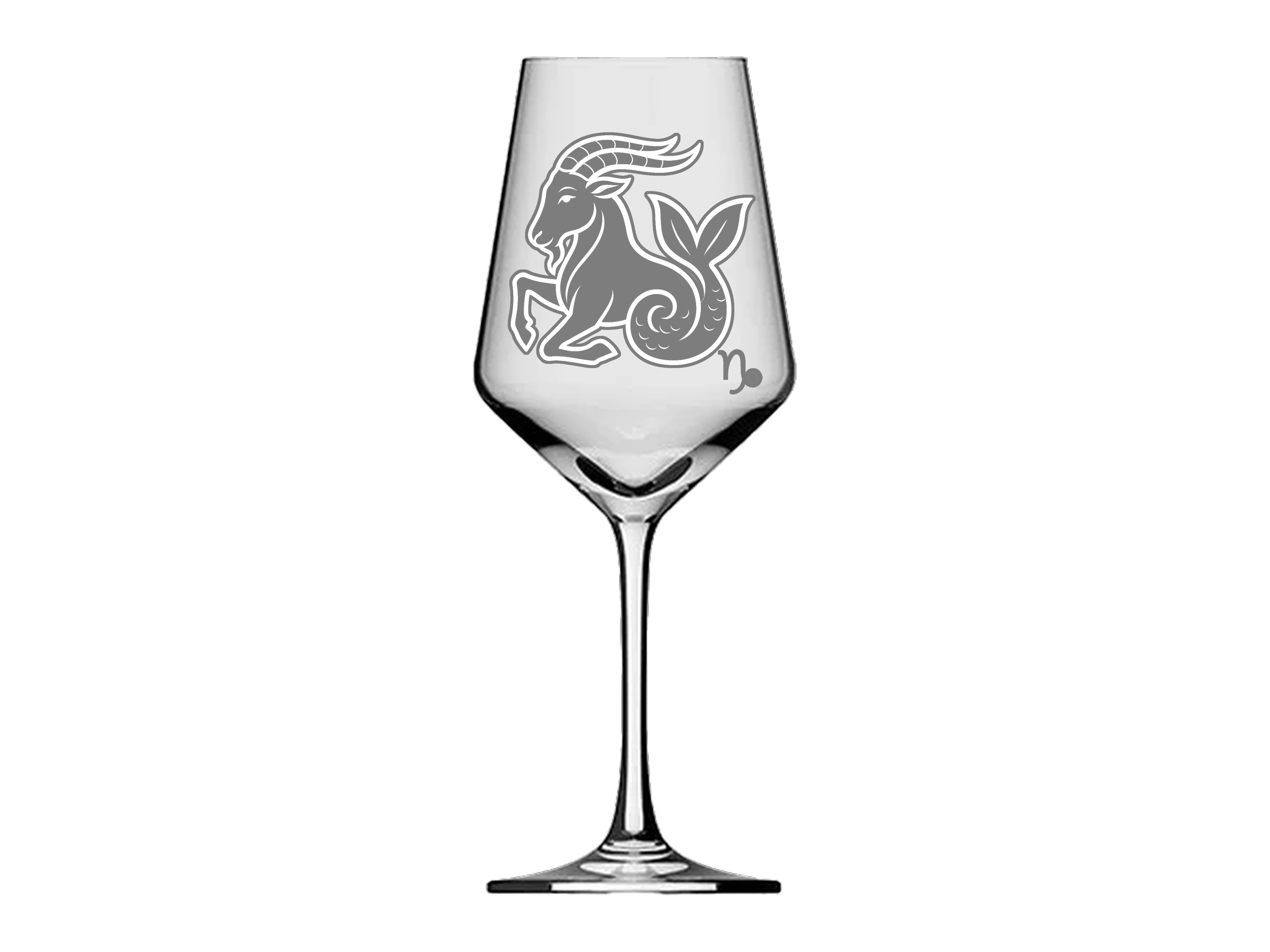 - Elegantes Weinglas mit Steinbock-Motiv, das das Wesen des Sternzeichens auf stilvolle Weise verkörpert.