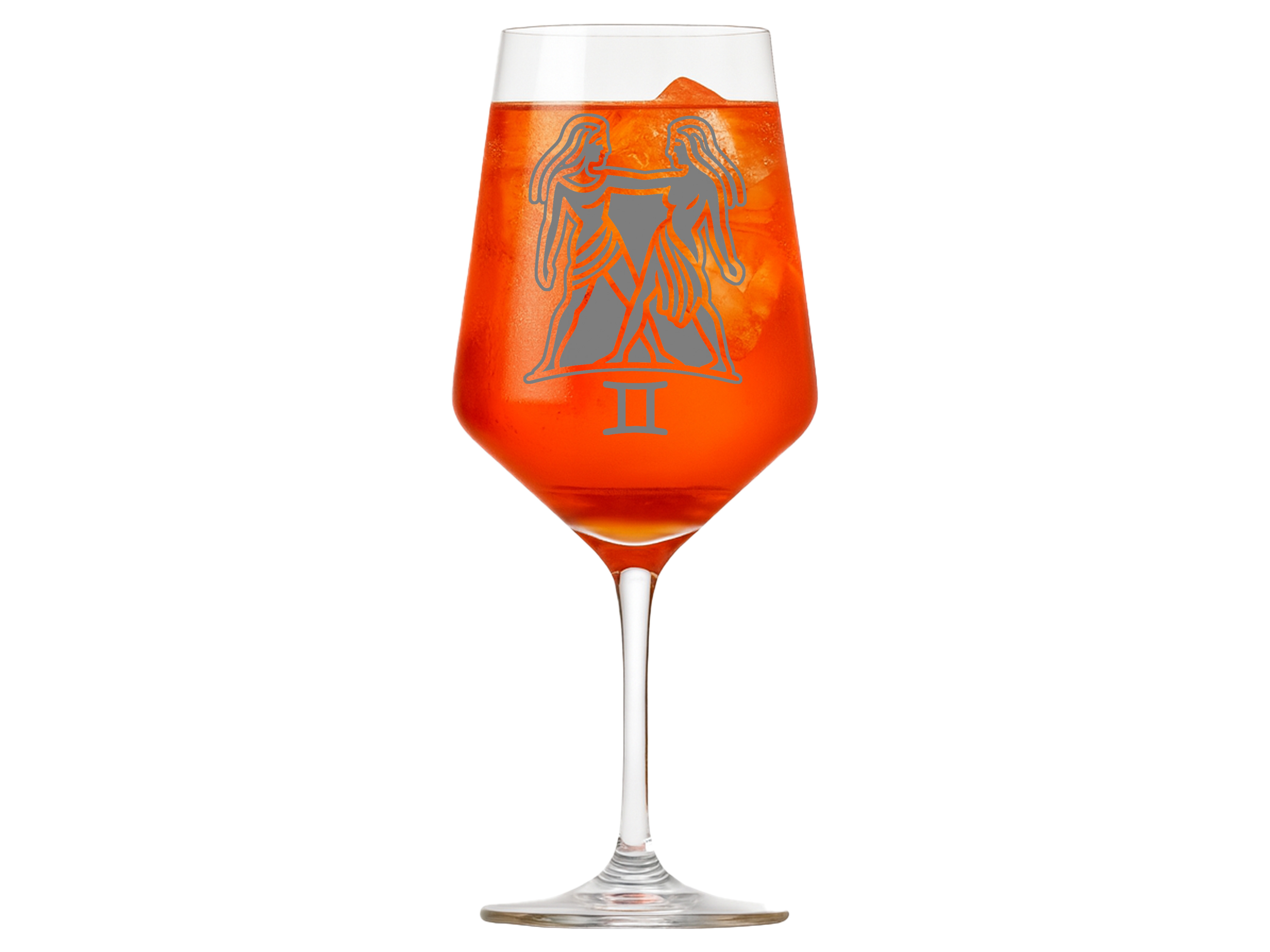 - Das elegante Weinglas zeigt eine ansprechende Gravur des Sternzeichens Zwilling und wertet jede Tischdekoration auf.