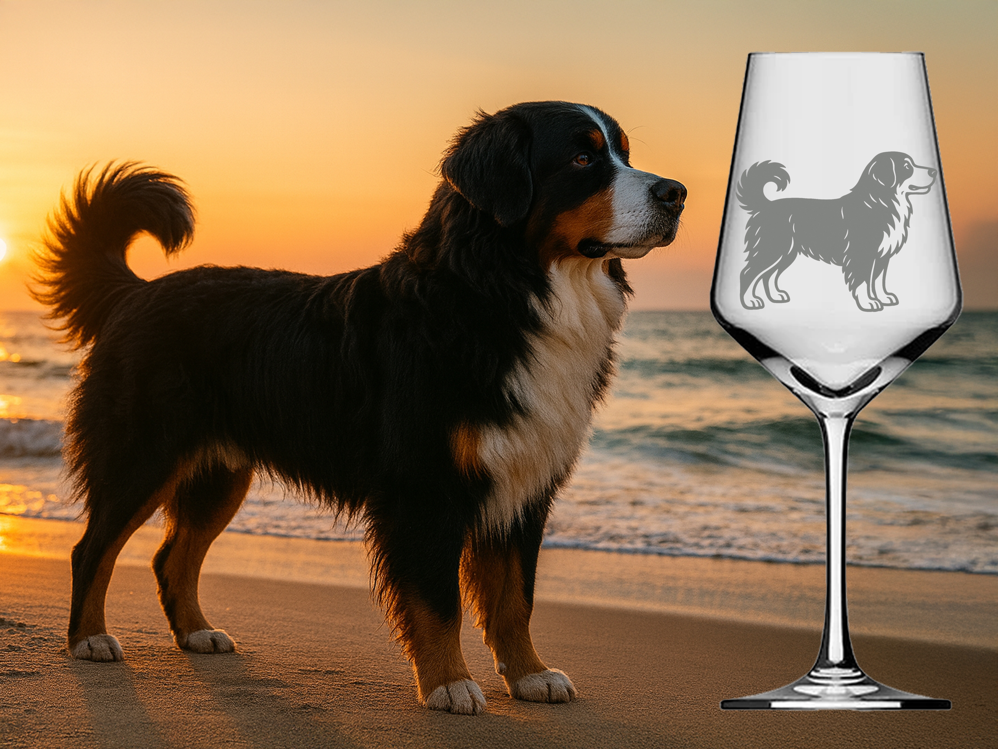 - Exoda Weinglas mit einzigartiger Berner Sennenhund Gravur, spülmaschinenfest, für Weinliebhaber und Hundefans.