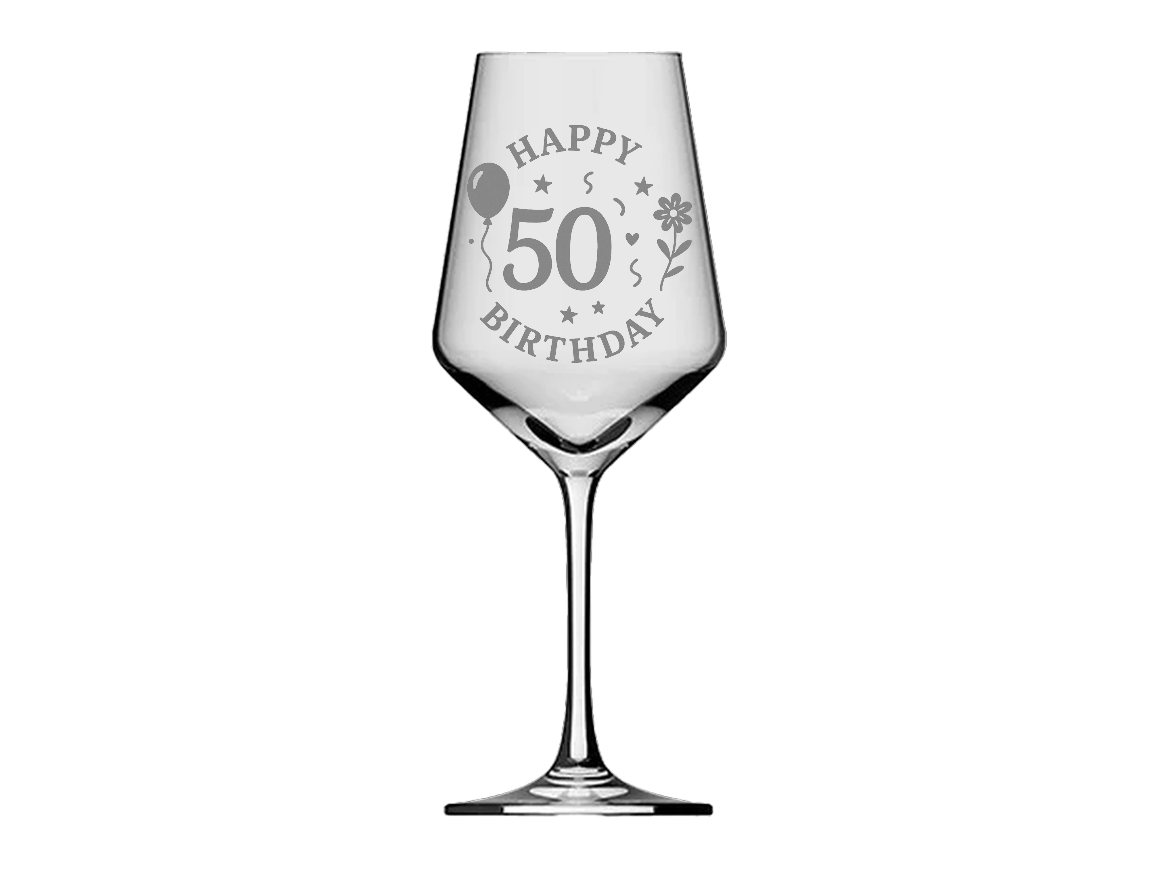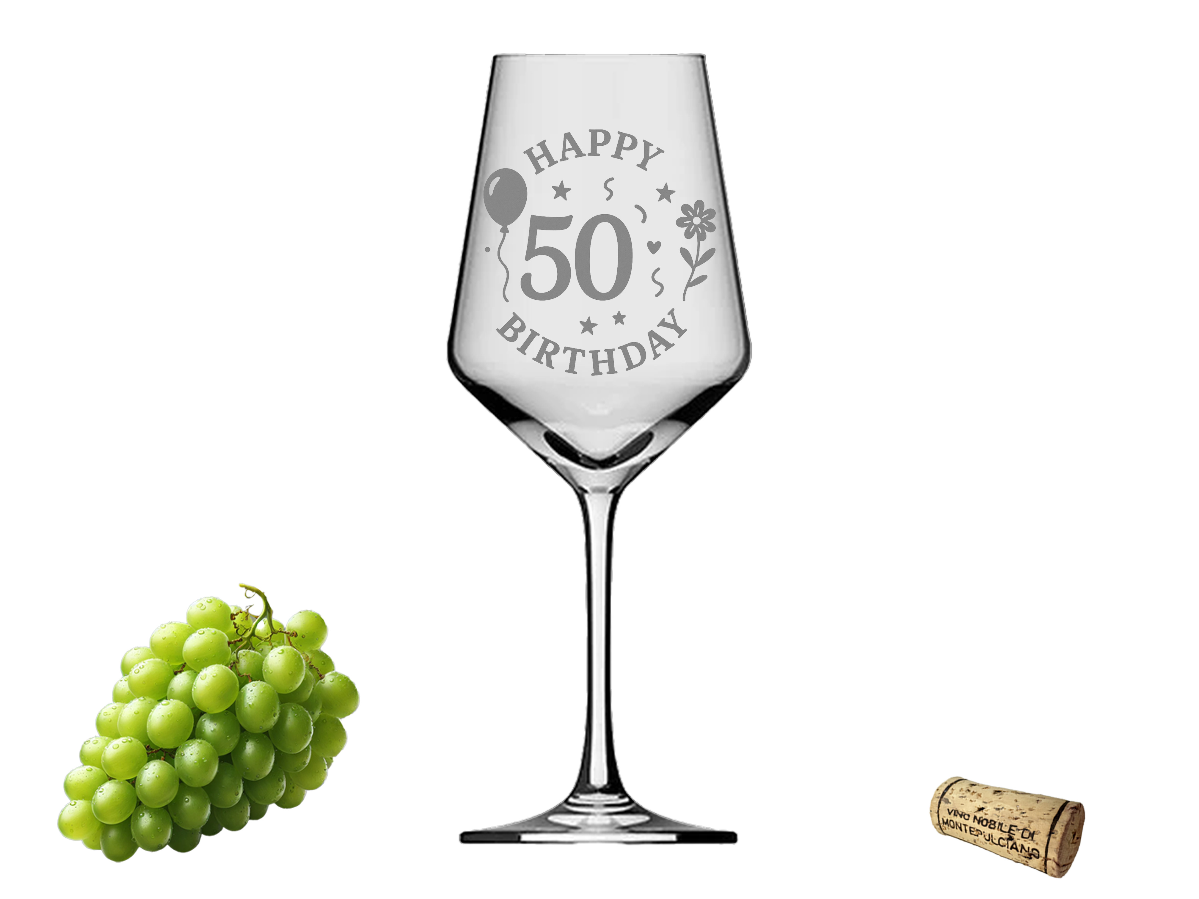 Weiterführende Links zu "Weinglas Gravur Happy Birthday 50 mit 350ml spülmaschinenfest und elegant"