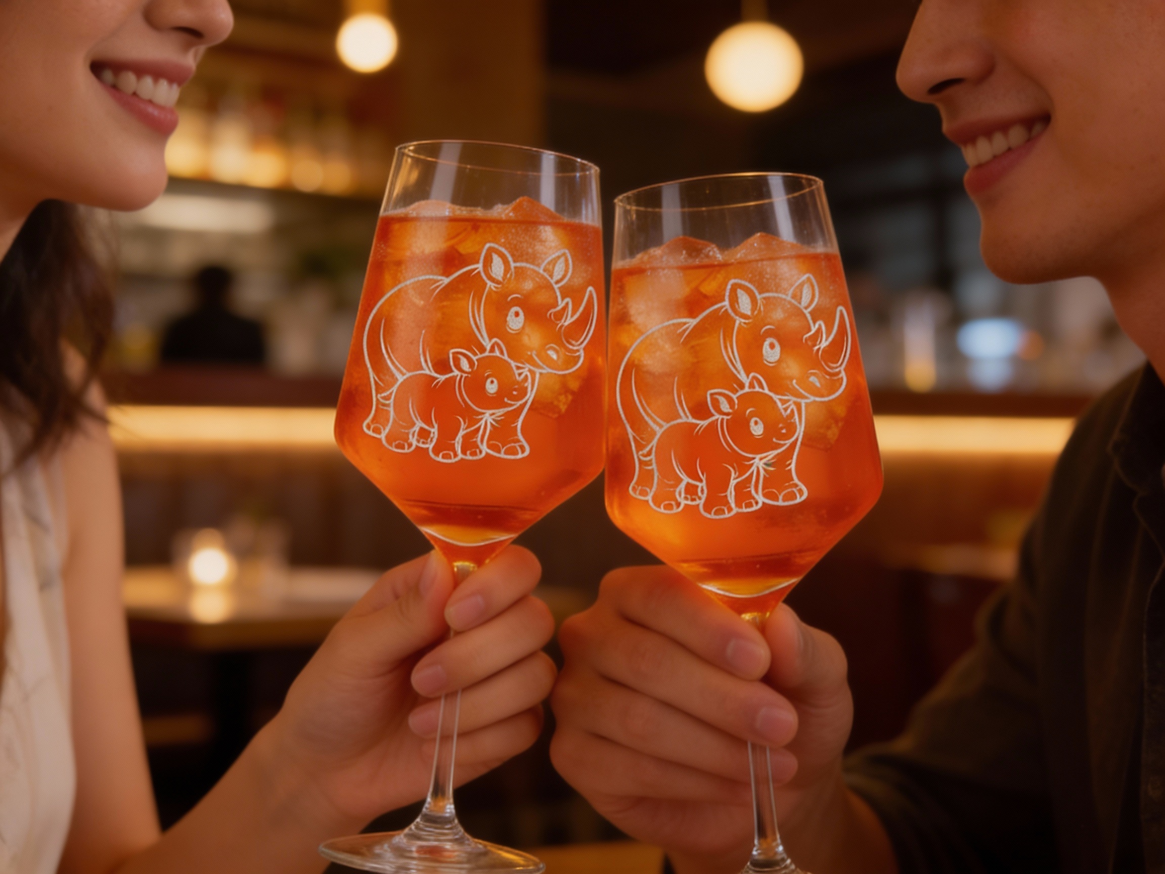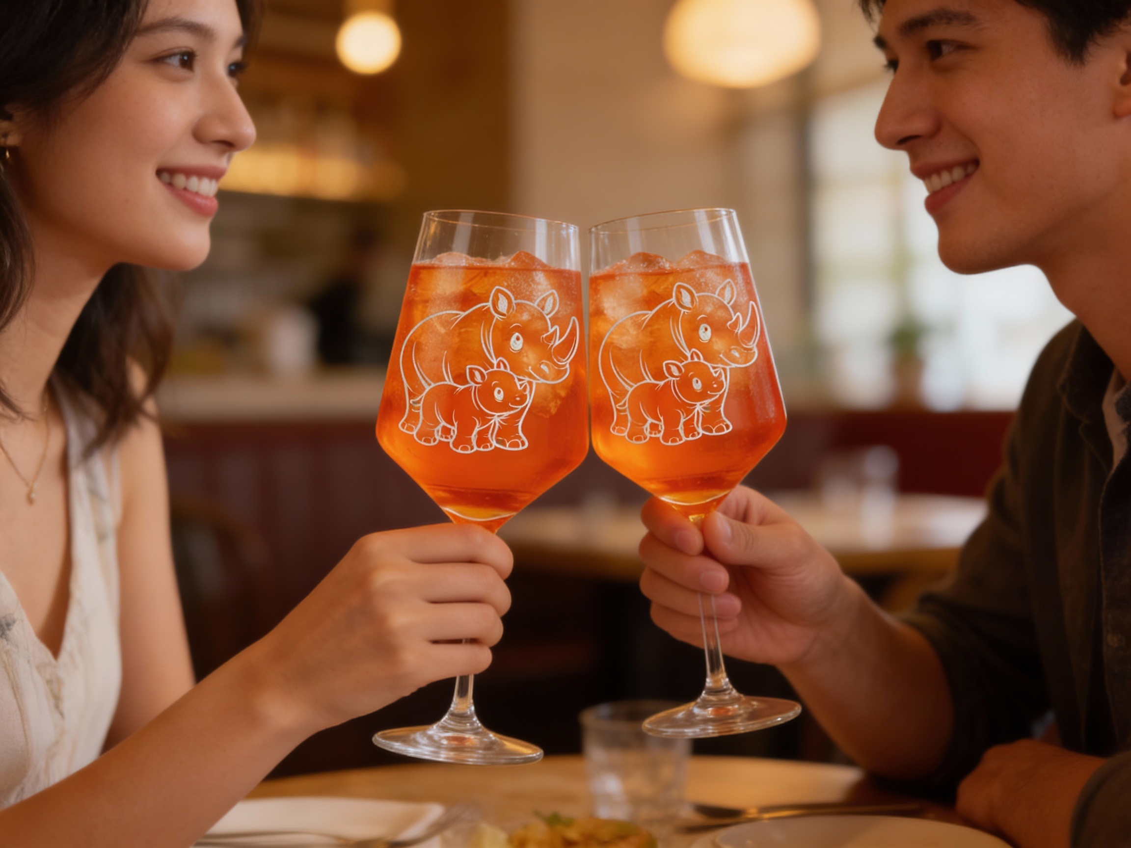 - Die liebevoll gestaltete Gravur zeigt ein niedliches Nashorn mit Baby, das als Blickfang jedem Tisch Glanz verleiht.