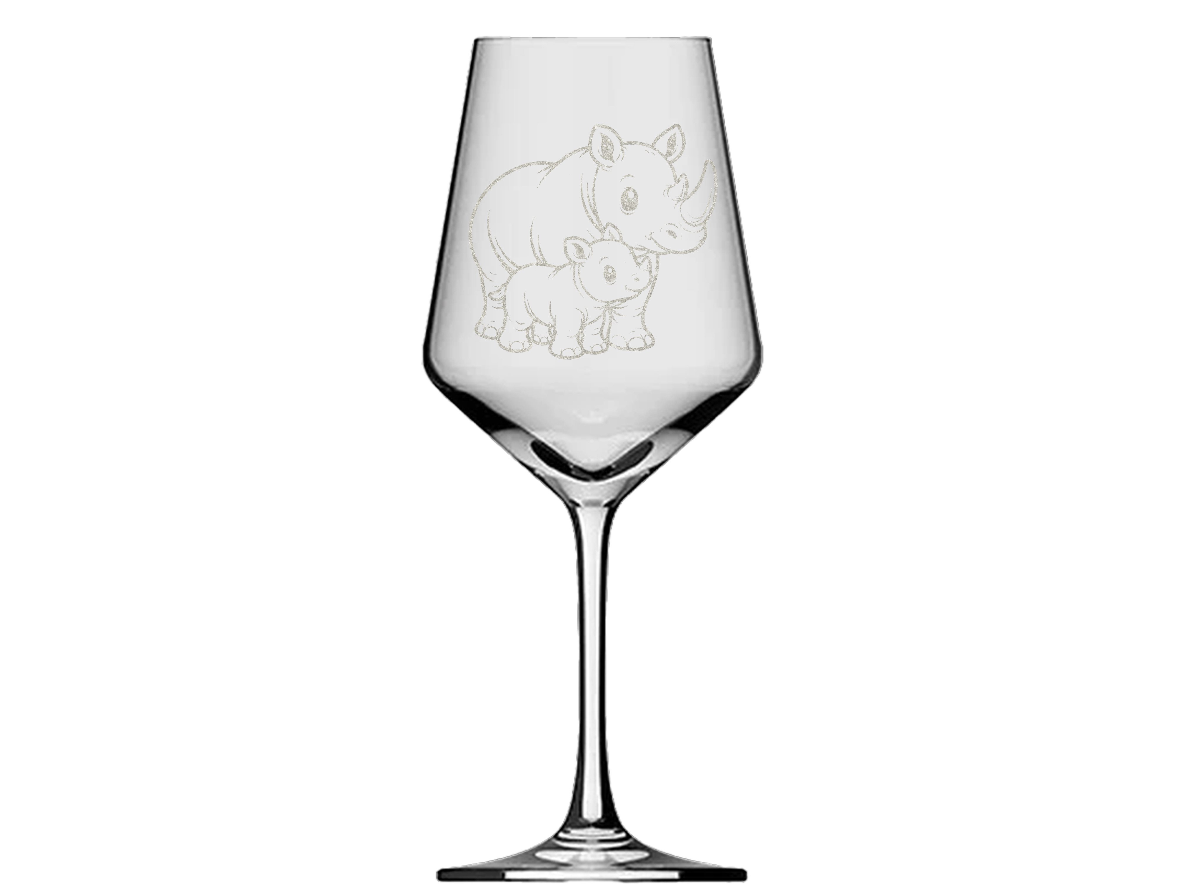 Weiterführende Links zu "1x Weinglas Nashorn Gravur mit Baby 350ml spülmaschinenfest 21cm hoch"