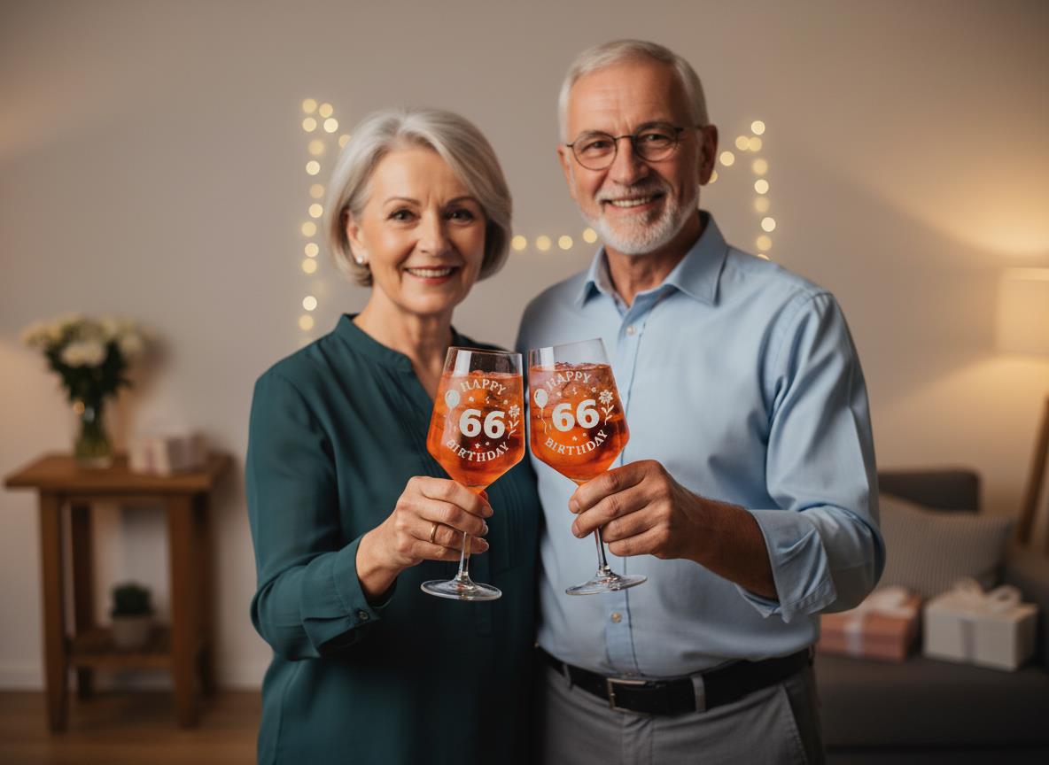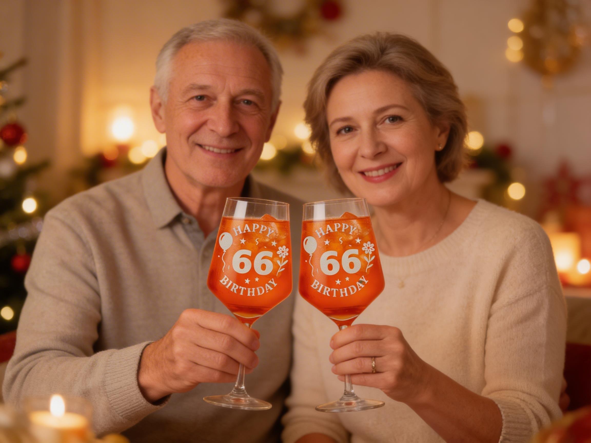 - Die gravierten Weingläser mit der Aufschrift Happy Birthday sind ideal, um den 66. Geburtstag in stilvoller Art zu feiern.